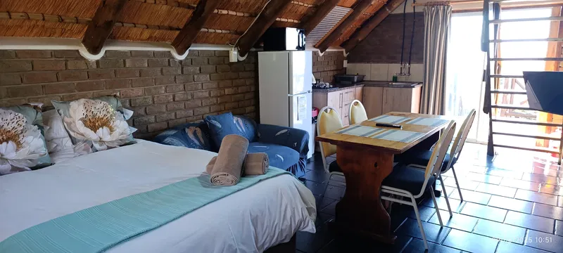 Gemsbok, which is located next to Lechwe, can host up to 4 guests, with two single beds on the ground floor and a double bed upstairs. Please be cautious when using the stairs, as they can be a bit tricky!