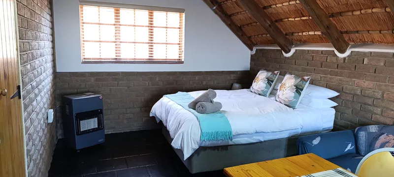 Zebra is a charming chalet with a cozy fireplace and electric blankets. The veranda offers stunning views of the farm, the Free State Savannah, and afternoon wildlife feedings.
