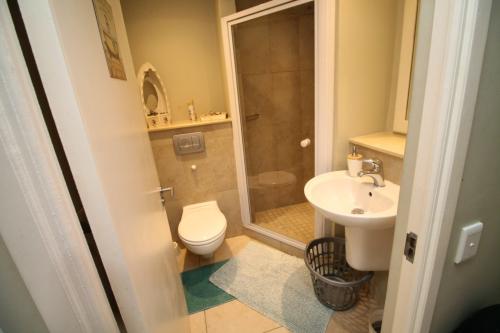 The second bathroom is fitted with a shower, toilet, and washbasin.