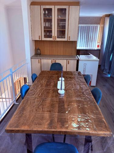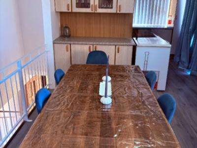 A 8-seater dining table adjacent to the kitchen is perfect for shared meals.