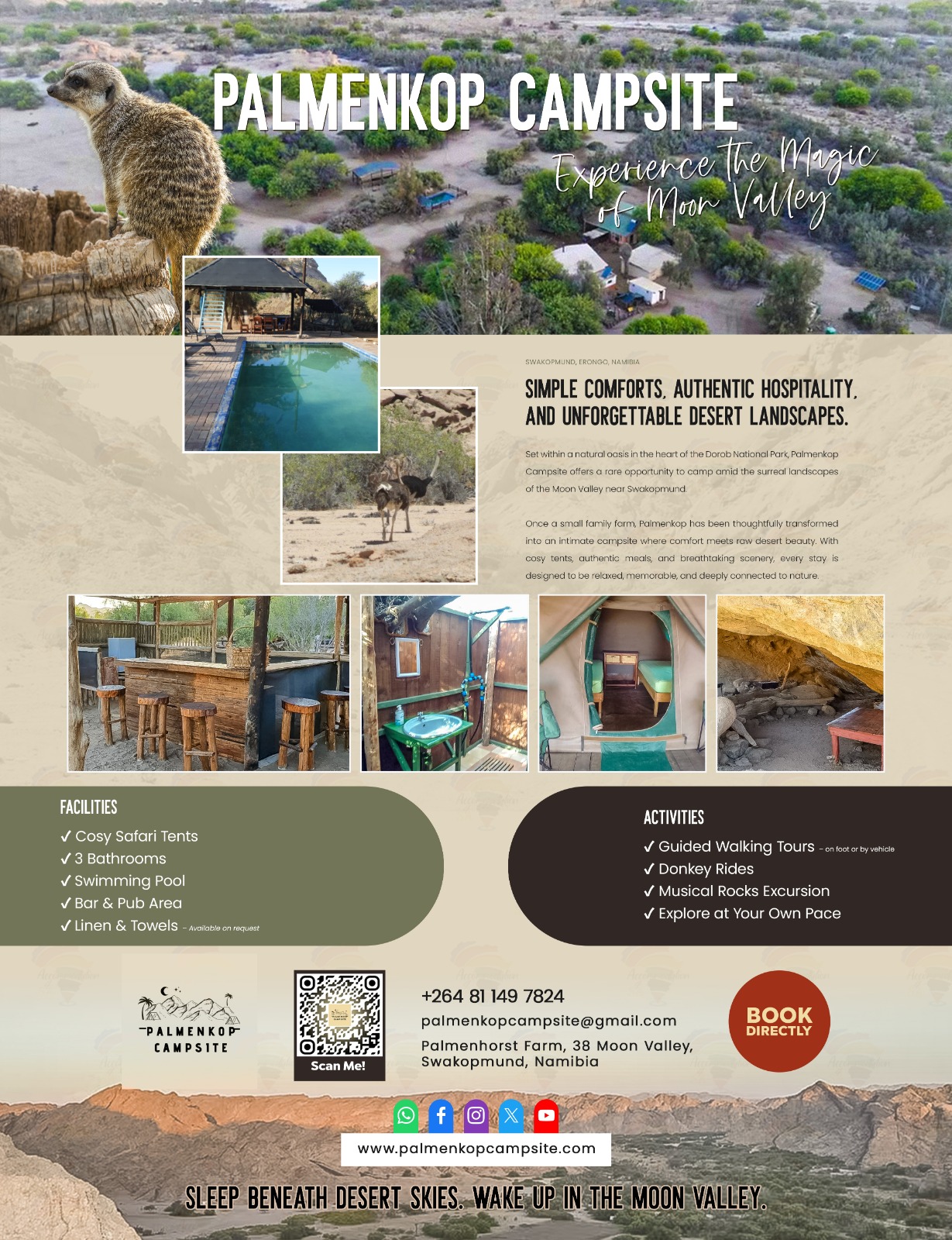 Palmenkop campsite offers a unique experience to camp in the middle of the Moon Valley.