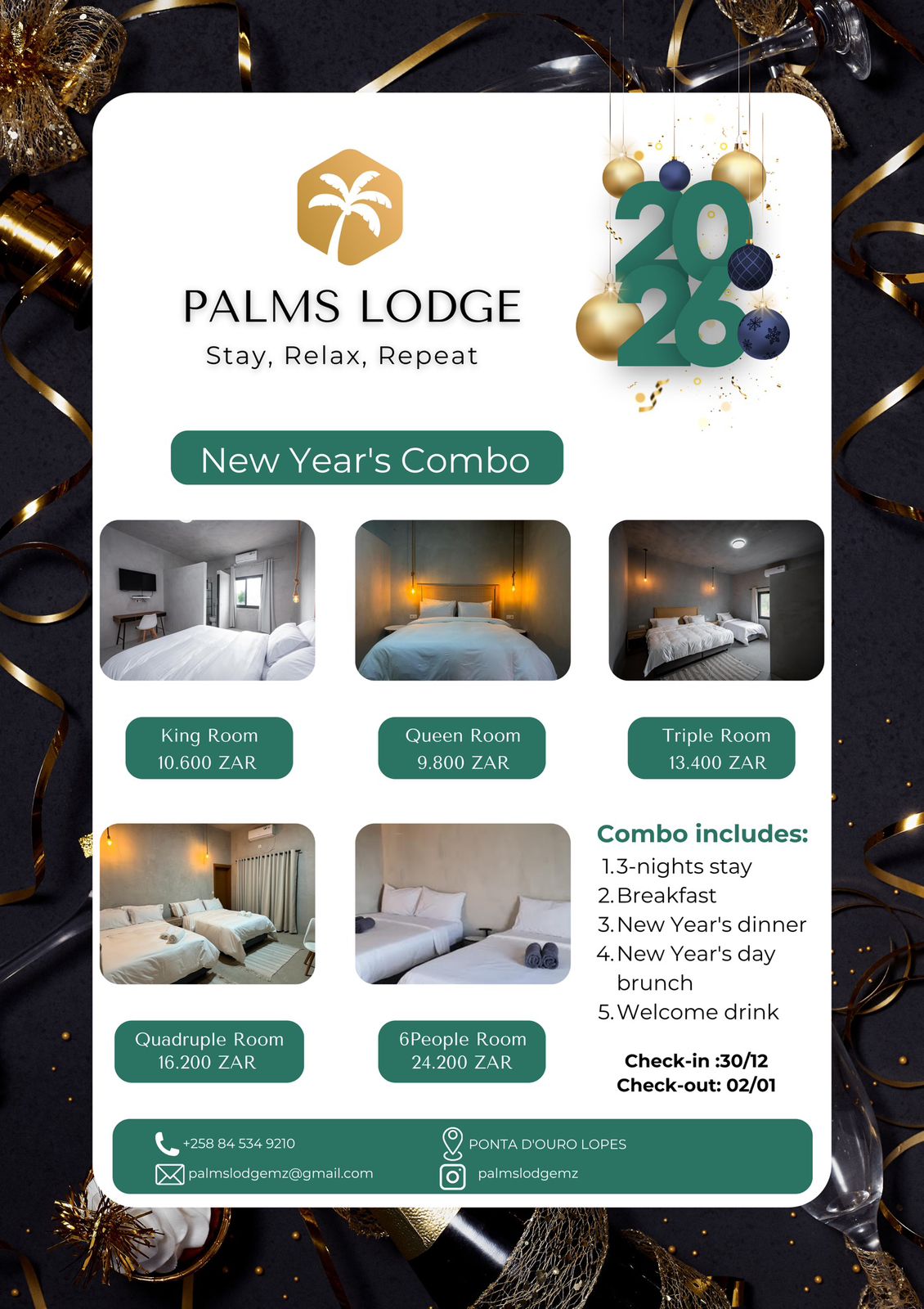 Discover the beauty of Mozambique and relax in style at Palms Lodge. Check our availability and book directly for the best rates.