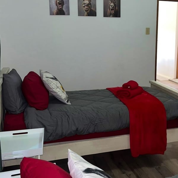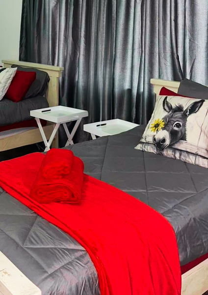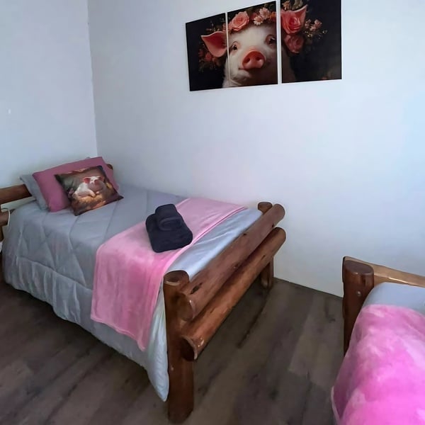 Hierdie kamer is ideaal vir kinders of vriende. Die donkie tema is oulik en gee aan die kamer 'n unieke gevoel.