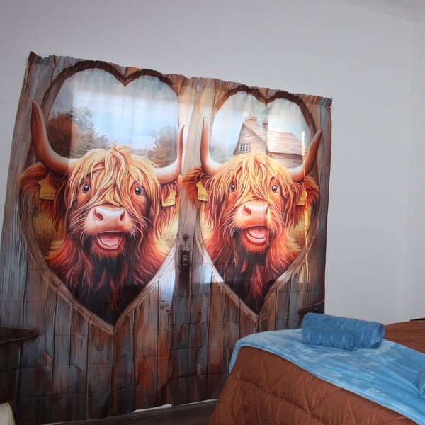 Die vensters bied 'n rustige uitsig oor die plaaslandskap.