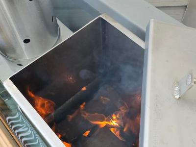 Fully equipped kitchen with a gas stove, air fryer, dishwasher, washing machine, microwave, fridge/freezer, ice machine, and Sodastream.