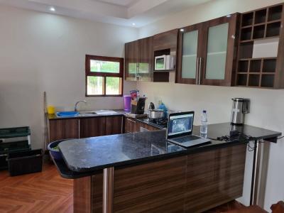 - Kitchen and lounge areas