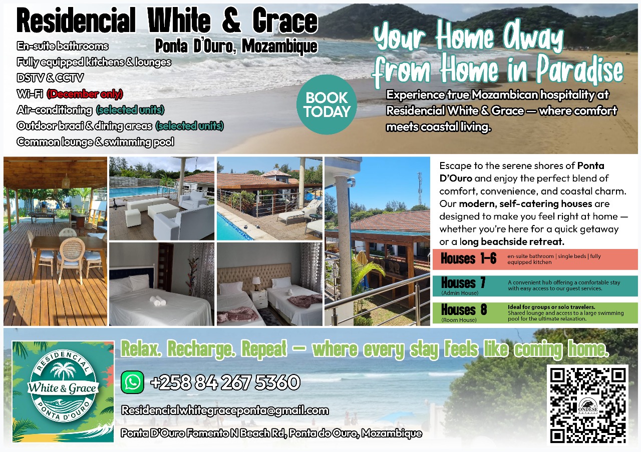 At Residential White & Grace, we offer comfortable and convenient accommodation options in our Ponta D'Ouro houses.
