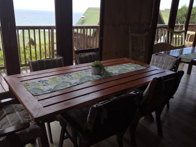 The deck features outdoor tables and seating for six, a gas braai with all accessories, and beautiful sea views—ideal for relaxing, entertaining, and making lasting memories.