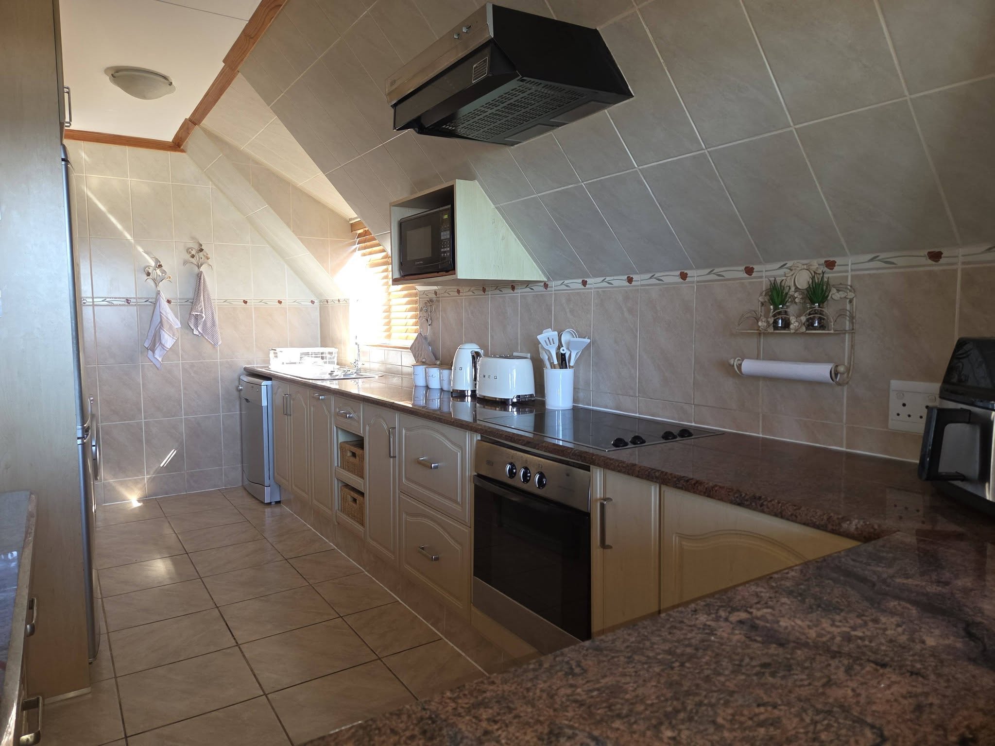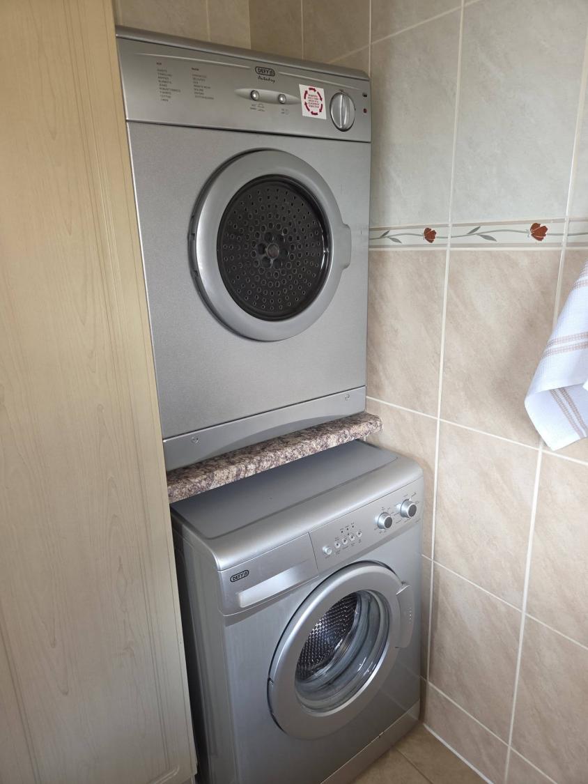 The home includes a fully equipped kitchen with everything you need, including a stove, microwave, fridge, freezer, dishwasher, tumble dryer, and all essential cookware, crockery, and utensils.