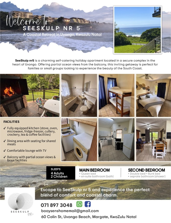 Welcome to SeeSkulp Nr 5, a lovely self-catering holiday apartment situated in the heart of Uvongo.
