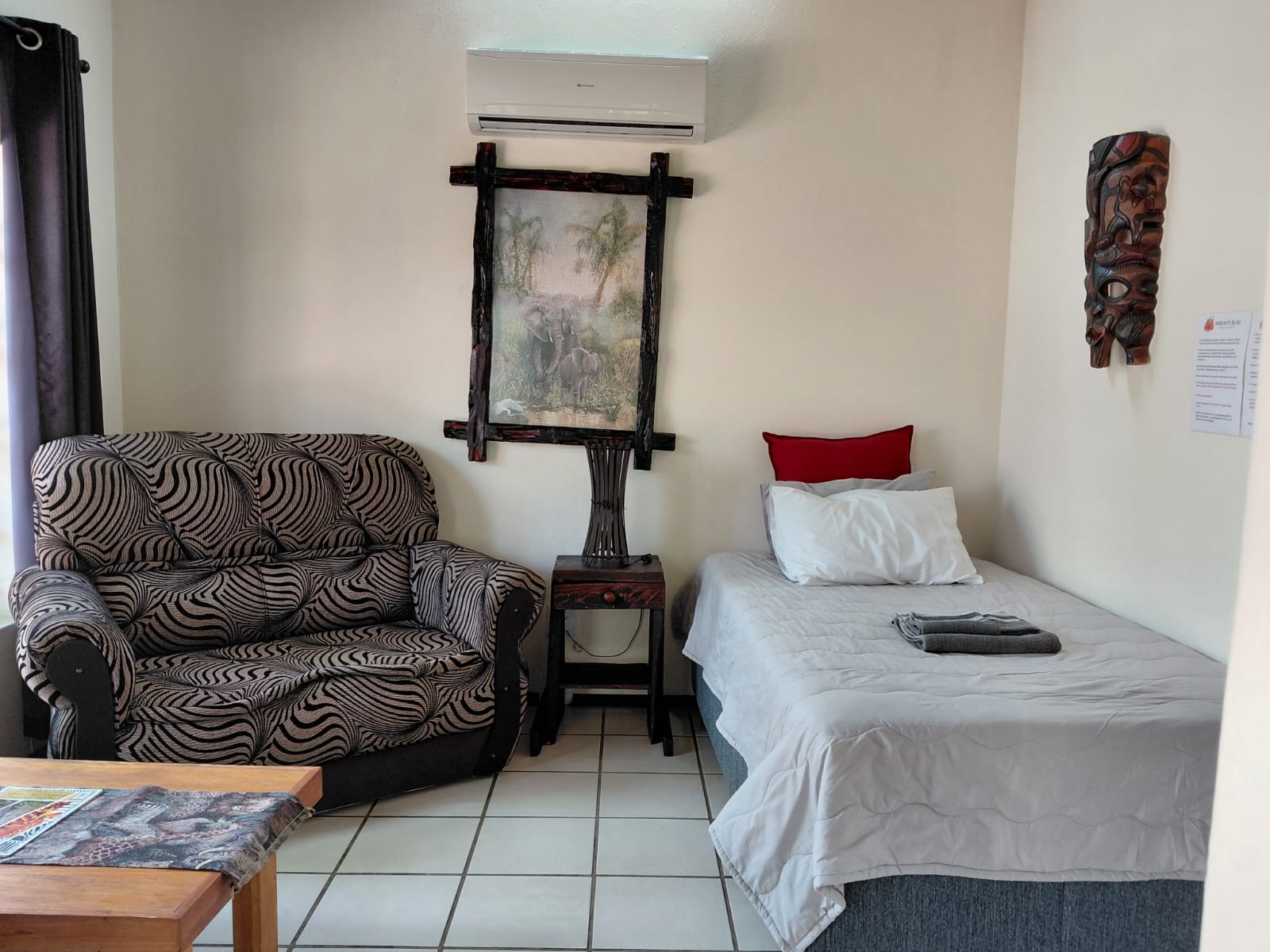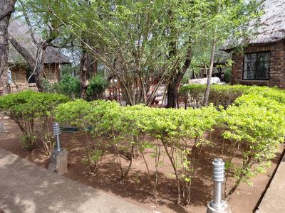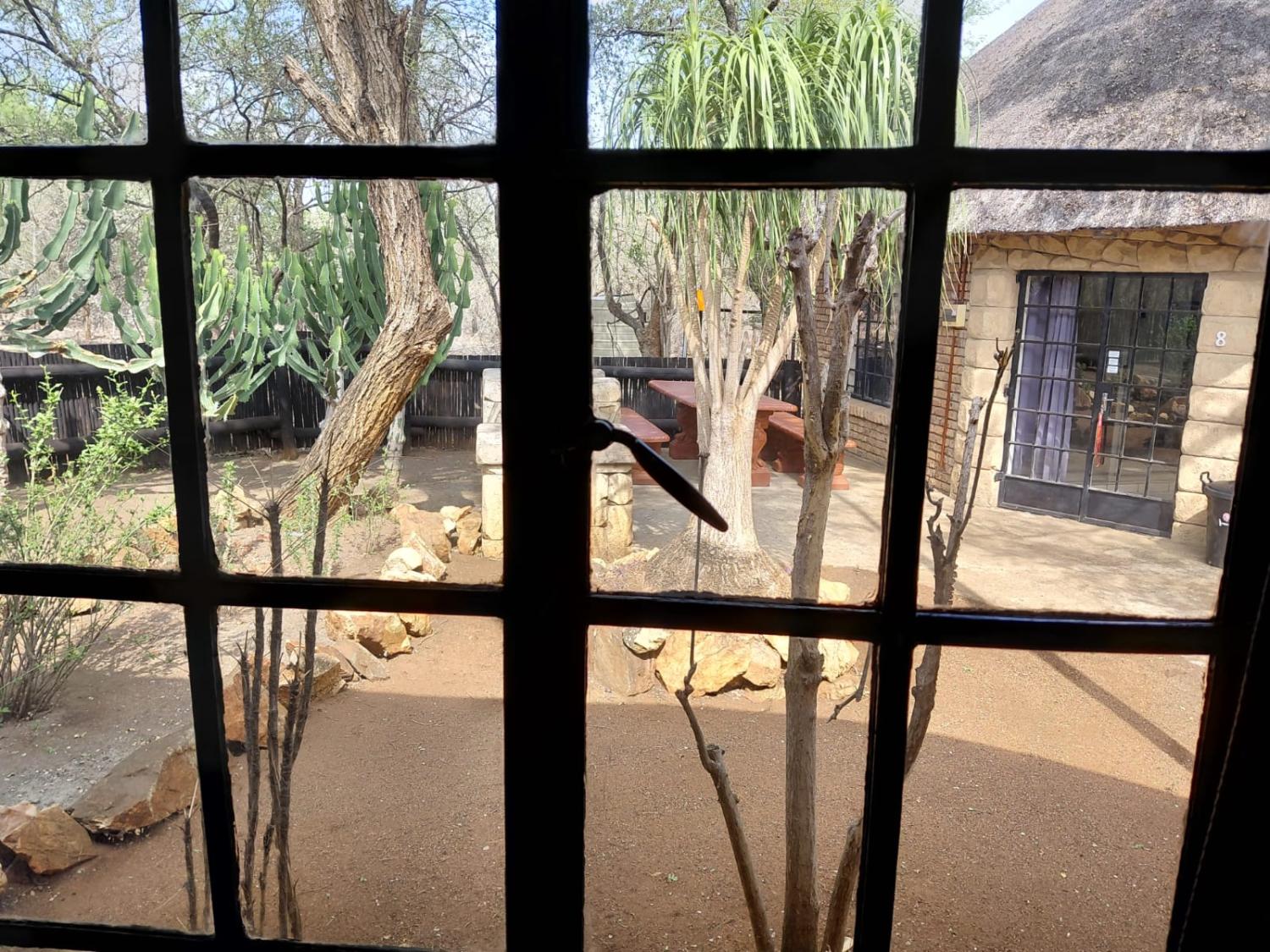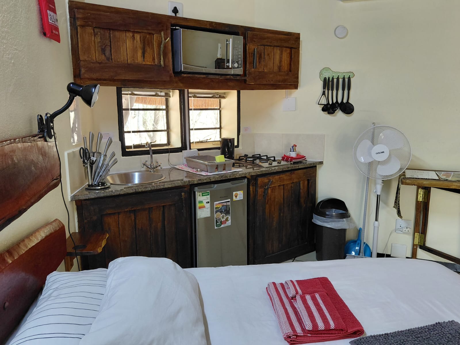 Each chalet is fully equipped for self- catering and offers a braai area to enjoy a rustic dinner or the primeval joy of enjoying a drink with your loved one while sitting around the flickering flames of a campfire. We have an inverter to combat loadshedding and borehole water, offering the bushveld experience while ensuring that you have the modern luxuries of uninterrupted aircon, hot water, and Wi-Fi. Join us at the boma fire on a chilly night or enjoy the communal pool with martini seats to refresh after a hot day. Relax on a lounger in a shady spot with a book or enjoy the warm sunshine and then take a plunge in the pool or watch the animals at the waterhole.