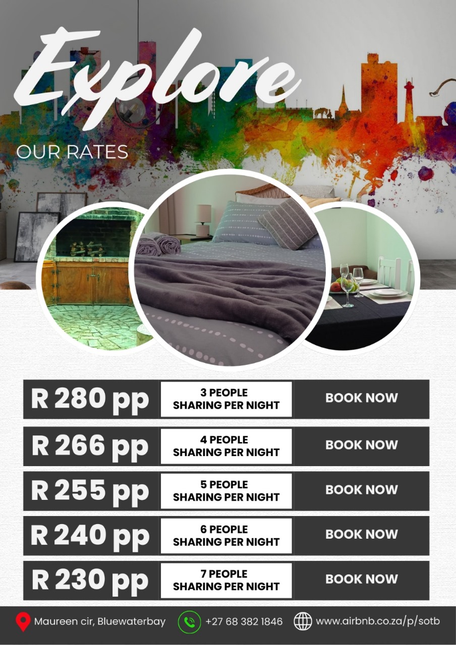 Your ultimate haven for hassle-free, short or long-term rentals that feel just like home! Nestled in Bluewater Bay, a prime area near the industrial Coega Special Economic Zone (SEZ) and bustling business hubs, we're the perfect fit for families seeking warmth, contractors on projects, corporate teams needing cohesion, site managers and supervisors focused on delivery, sports groups chasing victories, and school teams exploring horizons.