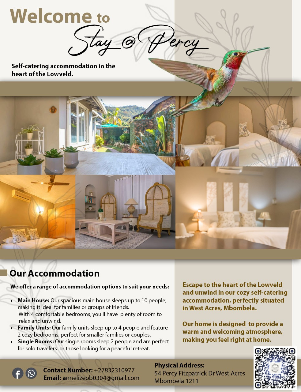 Escape to the heart of the Lowveld and unwind in our cozy self-catering accommodation, perfectly situated in West Acres, Mbombela.