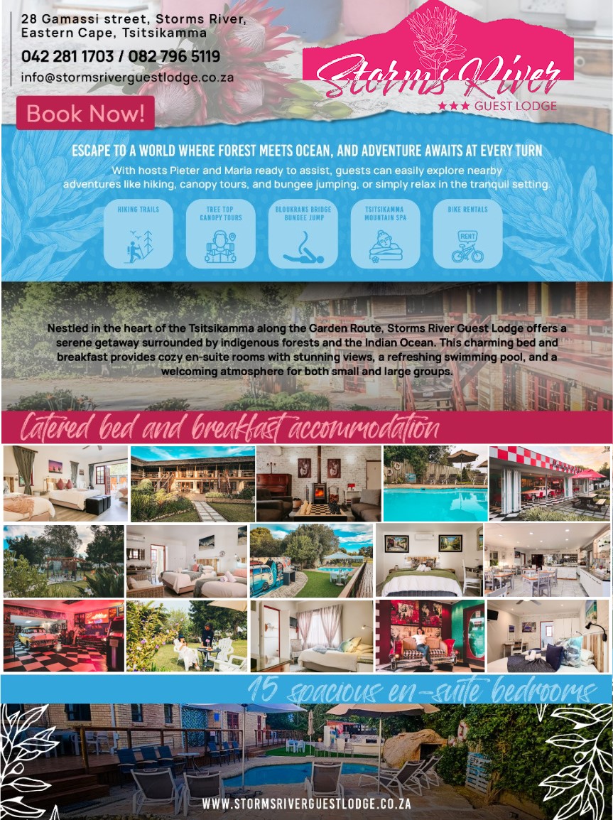 Storms River Guest Lodge is nestled in the tranquil village of Storms River, within the Tsitsikamma region of the Garden Route, known for its abundant water.