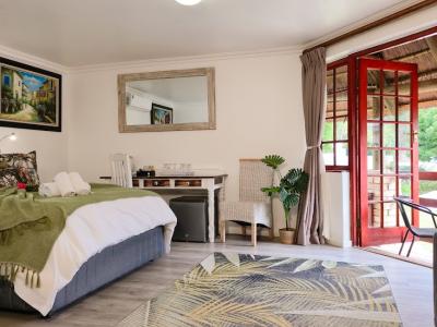 The upper floor boasts a generous verandah/balcony that provides breathtaking views of the Storms River Mountain Peak as well as the serene gardens of the lodge.
