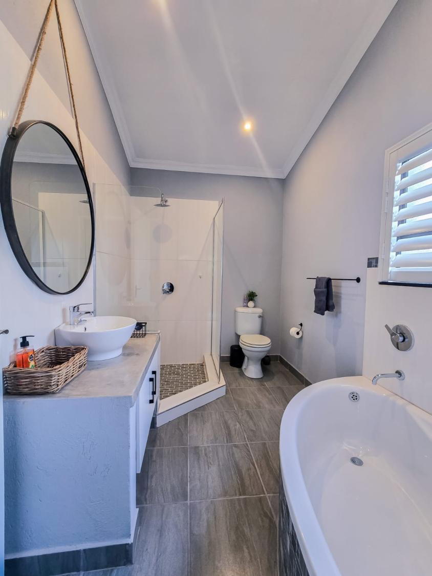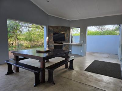 There is a spacious braai area with seating space, and a sparkling pool for guests to cool off.