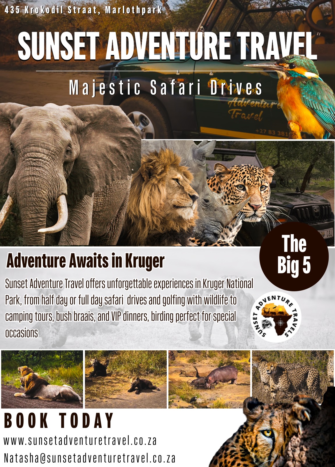 Discover the thrill of the great outdoors with our Camping Tours! We also offer this service where we craft unforgettable camping experiences that blend the exhilaration of adventure with the tranquility of nature. From the rugged bushveld to the serene riverines, we offer a range of tours that cater to both seasoned campers and first-time adventurers. Our expert guides lead you through breathtaking landscapes, ensuring your safety and comfort while you explore hidden gems and breathtaking vistas. This package is specially tailor made for groups, where we travel through to the Kruger, and includes guided morning and afternoon drives, food, bush braais etc.