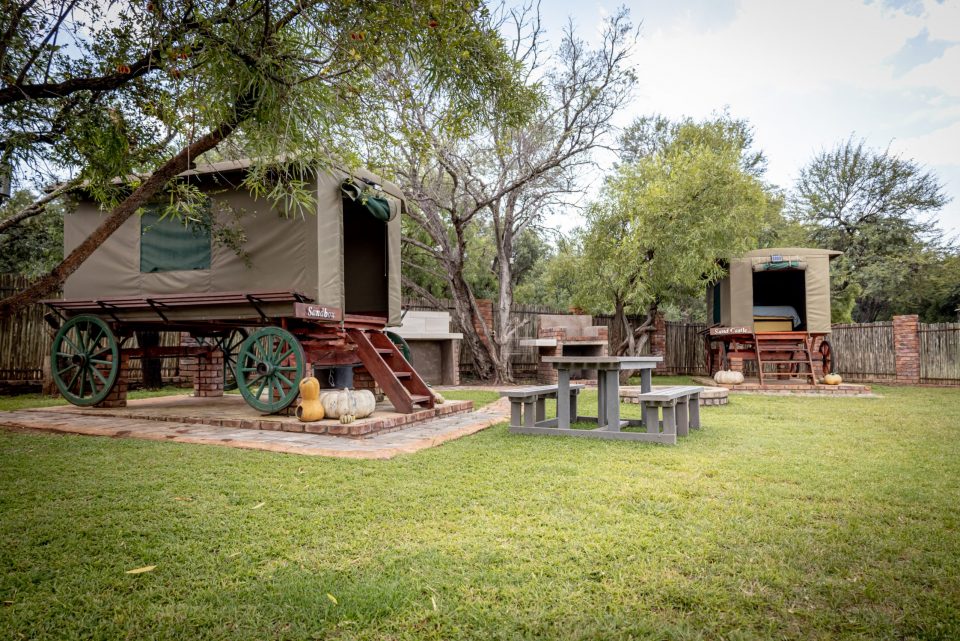 Old school "ossewaens" sleeps 2 people on a Queen Size bed in each unit. They also provide easy access to the dam.