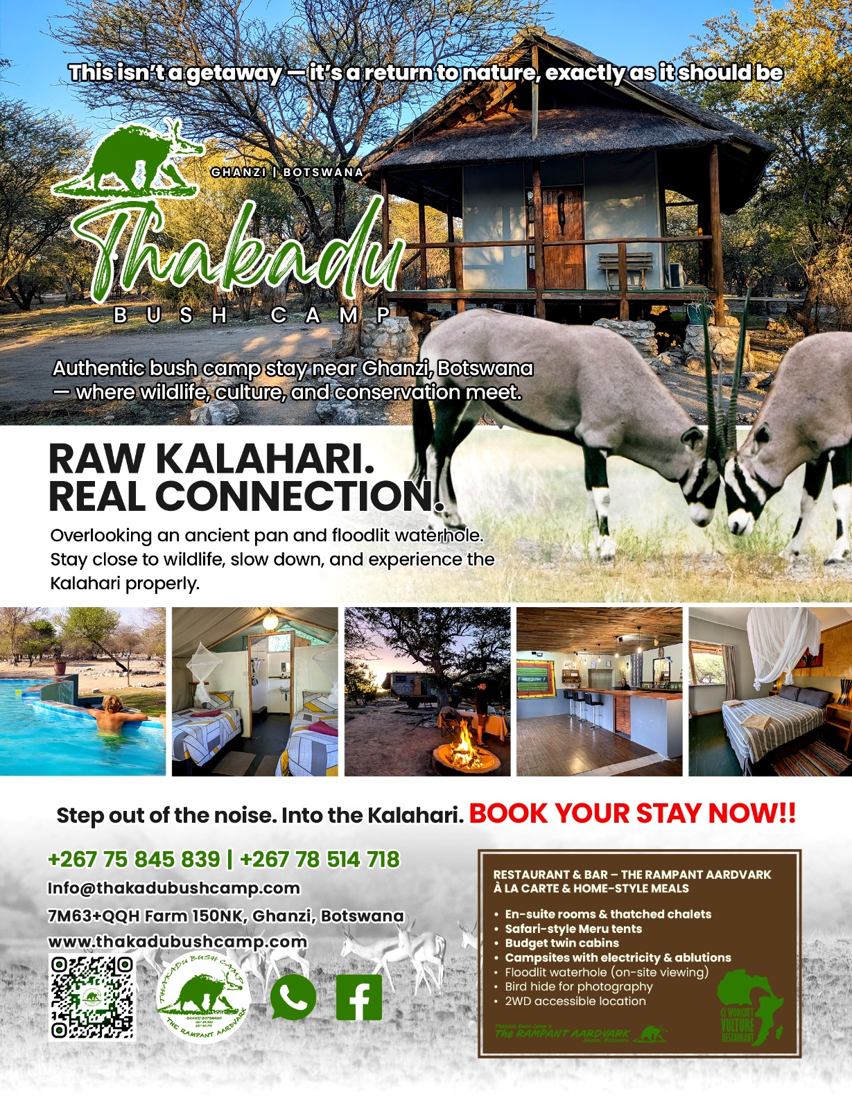 - Immerse yourself in the rhythm of the Kalahari and create unforgettable memories.
