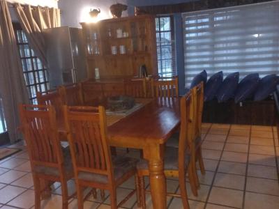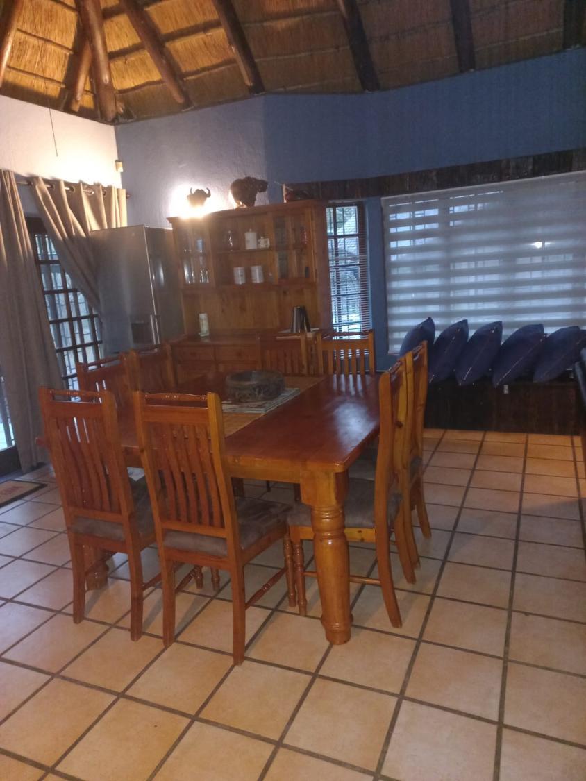 The open-plan lounge and dining area leads out to a lovely patio area, which has a braai area and a swimming pool.